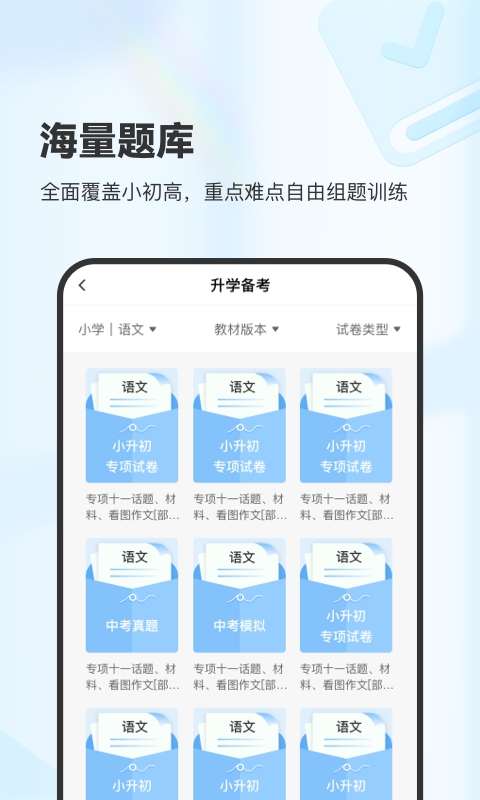 3、海量题库:全面覆盖小初高主要学科,题型随时可打!