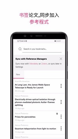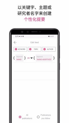 个性化您的应用。设置订阅源来显示包含您所选关键字和作者的论文摘要,您可以轻松发现对您重要的内容。