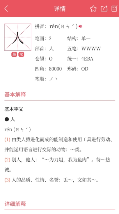 2、能够在线一览汉字的全部信息,一词多义的话也能一手掌握