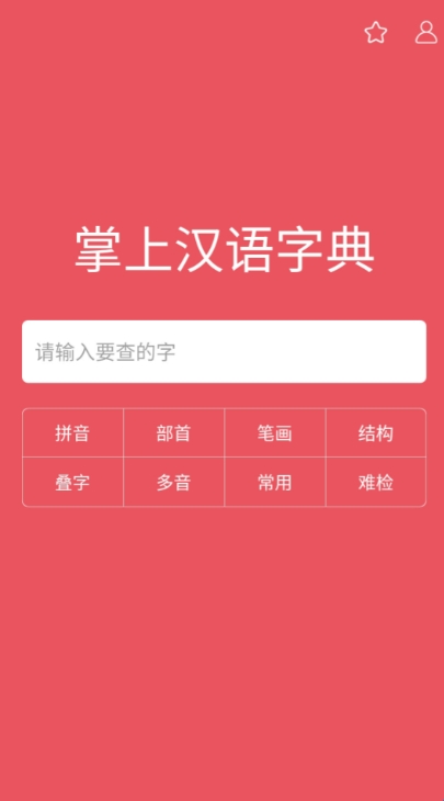 2、在首页中选择不同类型的查字功能快速查询汉字信息,了解汉字拼音和笔画等内容