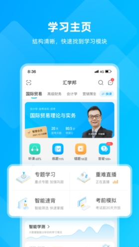 汇学邦app官方版是由四川汇学邦教育科技有限公司推出的线上学习平台,不管你是还在职的学生,还是参加工作了,都是可以来这里轻松进行学习的,各种资格证书是能轻松拿到手的,同时自由度也是非常强的,可以利用碎片化的时间随时随地进行学习,有需要的用户可以来下载!