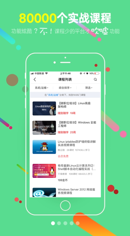1、云端同步:支持课程收藏,分享及云端同步学习记录,随意切换学习终端,升职加薪还会远么。