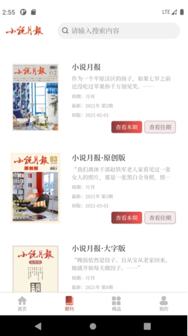 4、点击期刊频道,可以查看小说月报以及往期的内容;