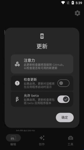 界面布局:打开lmageToolbox,你会看到功能被分为“编辑-创作-工具”三个主要类别。每个类别下都有多个子功能,如滤镜、裁剪、质量调整等编辑功能: