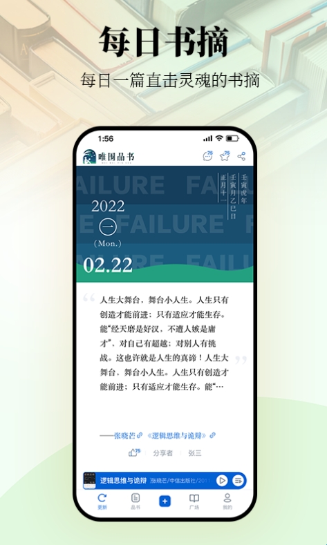 1、书摘阅读与分享:唯围品书为用户提供了一个丰富的书摘社区,用户可以在这里浏览或发布书摘,寻找共鸣。同时,用户还可以生成精美的书摘卡片并分享至社交平台。