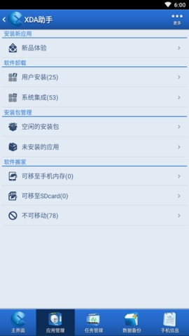 xda助手,一款针对安卓手机用户打造的手机管理工具,软件功能强大,兼容多种安卓手机型号,集文件、应用、任务管理器及无线传输于一体,可以帮助用户轻松管理手机中的各种软件、文件、应用和任务等内容,避免出现内存空间不足和其他问题,提高手机的性能。