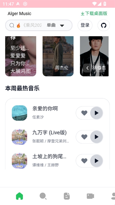 首先在本站下载AIgerMusicPlayer,进入可以看到每周热门音乐