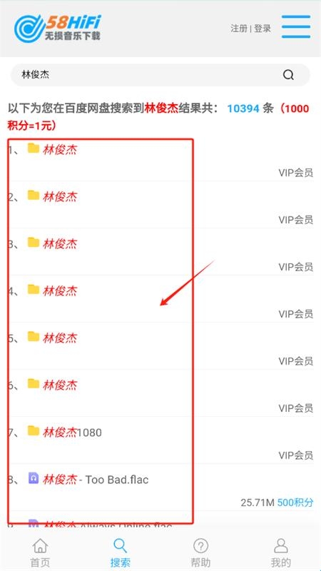 3、用户通过搜索或分类浏览找到目标音乐后,可直接点击下载链接获取文件。