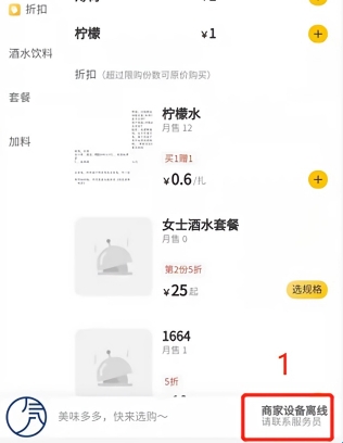 顾客使用扫码点餐时,扫码点餐右下角提示:商家设备离线