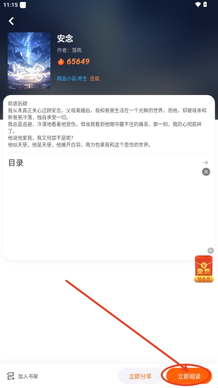 3、随便点开一篇小说就可以直接立即阅读,也可以加入到你的书架,方便你下次直接看,阅读界面还可以日间或晚上包括字体的大小页面的背景还有翻页的动作自己都可以自行设置调整。全程没有一点广子看起来真的非常舒服。