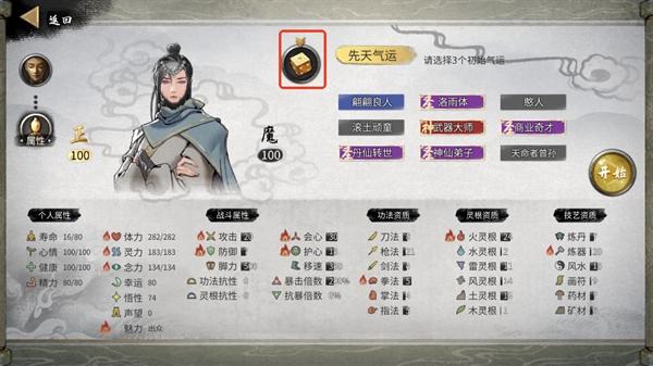 3、之后就是大家所期待的捏人环节了,游戏包含了性格以及和资质,你可以通过骰子进行重制;