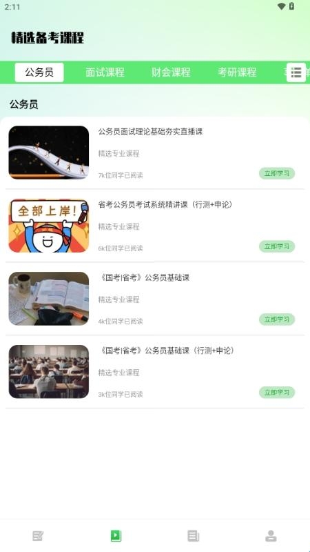 1、提供大量高质量的课程,可以为考生提供充足的课程资源进行考试准备。