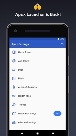 尖端启动器,也叫Apex Launcher、Apex启动器、Launcher启动器,这是一款超级好用且免费的桌面美化工具。用户可以通过这款软件来整理自己的手机桌面,合理的将每一个软件收录到对应的格子里,使得自己的手机桌面看起来更加整洁。还支持在软件内更换壁纸、图标、主题,打造一份独属于你自己的手机桌面!心动不如行动,感兴趣的小伙伴快来下载尖端启动器体验一下吧!
