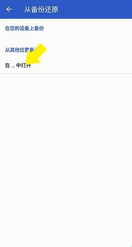 之后点击从其他位置备份下方的在...中打开并找到我们的备份文件即可。