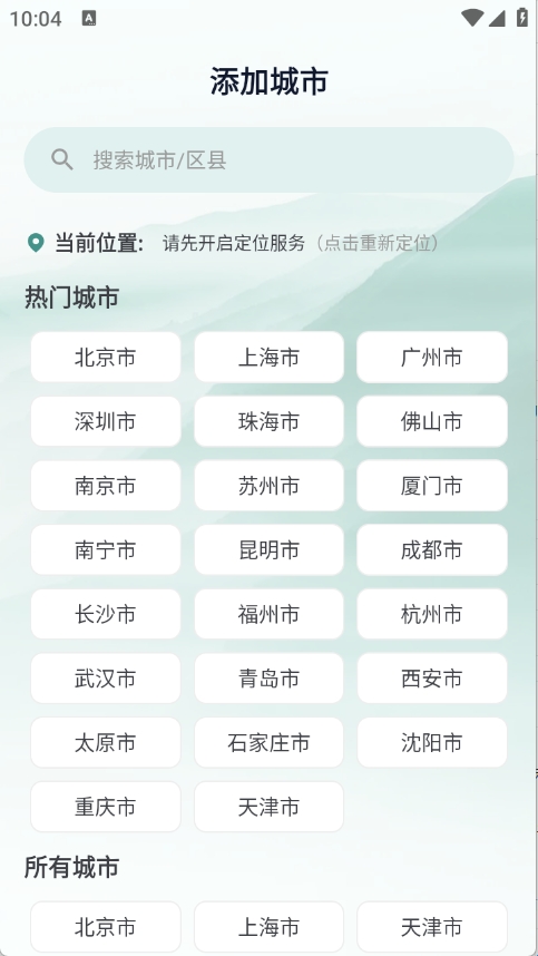 2、搜索城市或者开启定位。