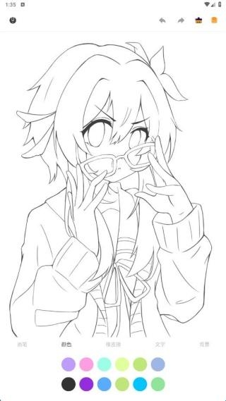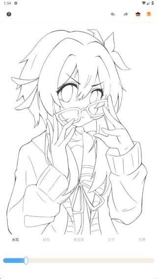 2、点击线稿进入,笔触粗细自由切换,保证涂色进度。