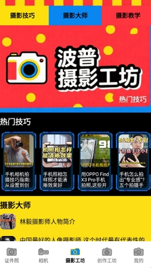 3、在摄影工坊,这里有许多摄影技巧,还有摄影大师的介绍。