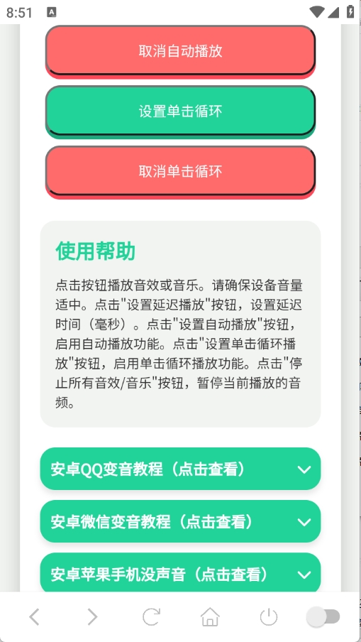 1、点击按钮播放音效或音乐。请确保设备音量适中。