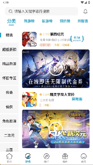 2、在游戏板块内,也可以按照游戏分类选择喜欢的游戏。