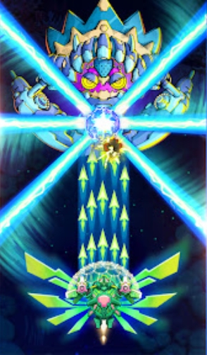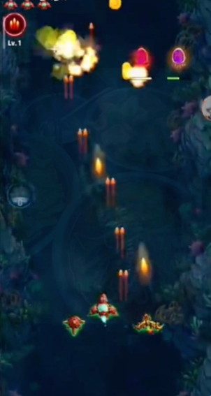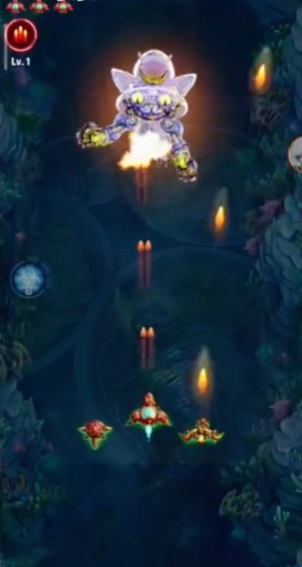 3、每一种战机都有着强力的专属技能,通过升级子弹来让满屏充满子弹,满屏幕的弹幕将会带给你极大的视觉冲击。