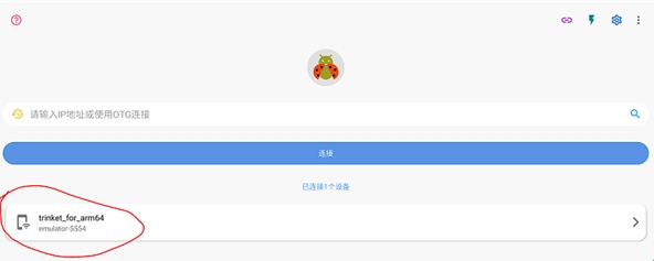 5、打开甲壳虫adb助手,此时搜索框下方会出现设备(可能需要十几秒钟刷新),选中后点击连接无线ADB开关