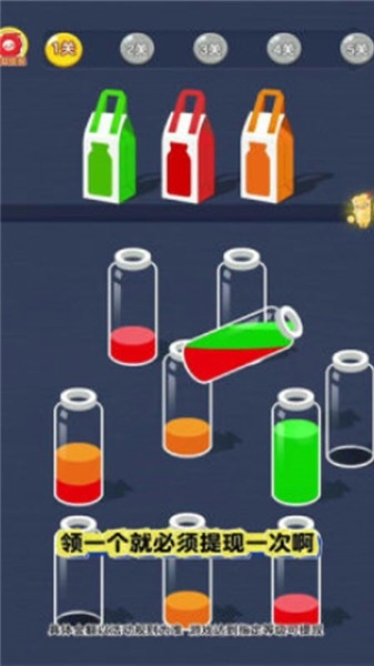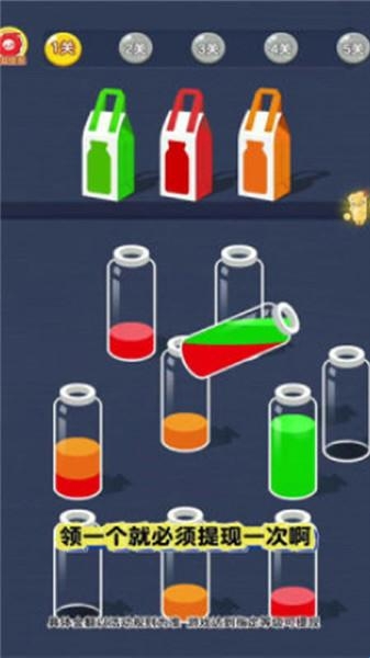 4、成功将所有液体装满瓶子就能够过关获得奖励了。