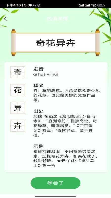 用户可以全面掌握相关的成语知识,便捷查看成语的释义解析和历史出处,详细查看。
