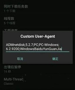 最后在 “Custom项”中填写、netdisk;5.2.7;PC;PC-Windows;6.2.9200;WindowsBaiduYunGuanJia