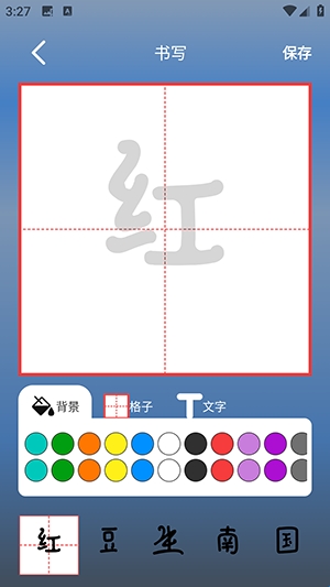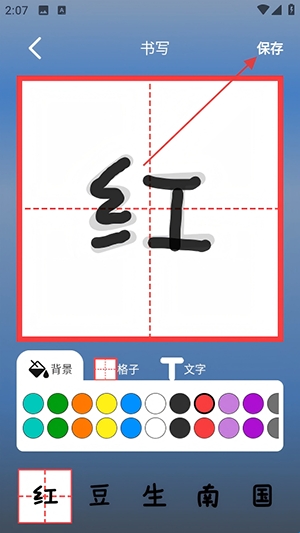 4、在书写页面,书写完成后点击右上角【保存】按钮,就能保存书写成果。