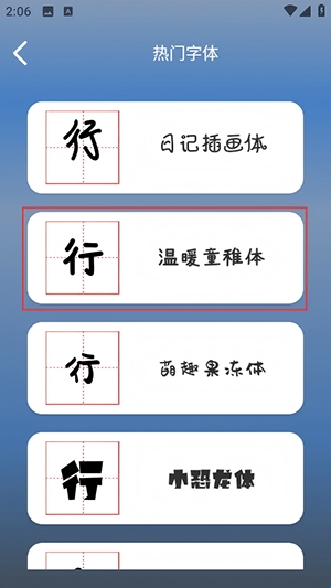 2、在【热门字体】页面,点击【温暖童稚体】使用。