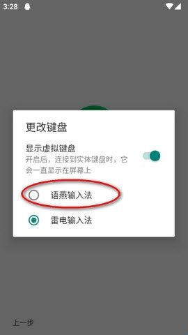 2、在出现的弹窗中点击【雨燕输入法】,开启【显示虚拟键盘】。