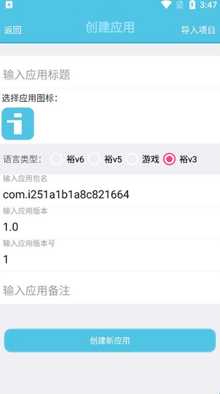 首先进入iApp软件,点击项目,然后创建一个项目,包名版本号随便填;