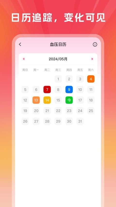 以日历的方式为用户呈现健康数据,便于用户追踪查看,知道数据变化情况;