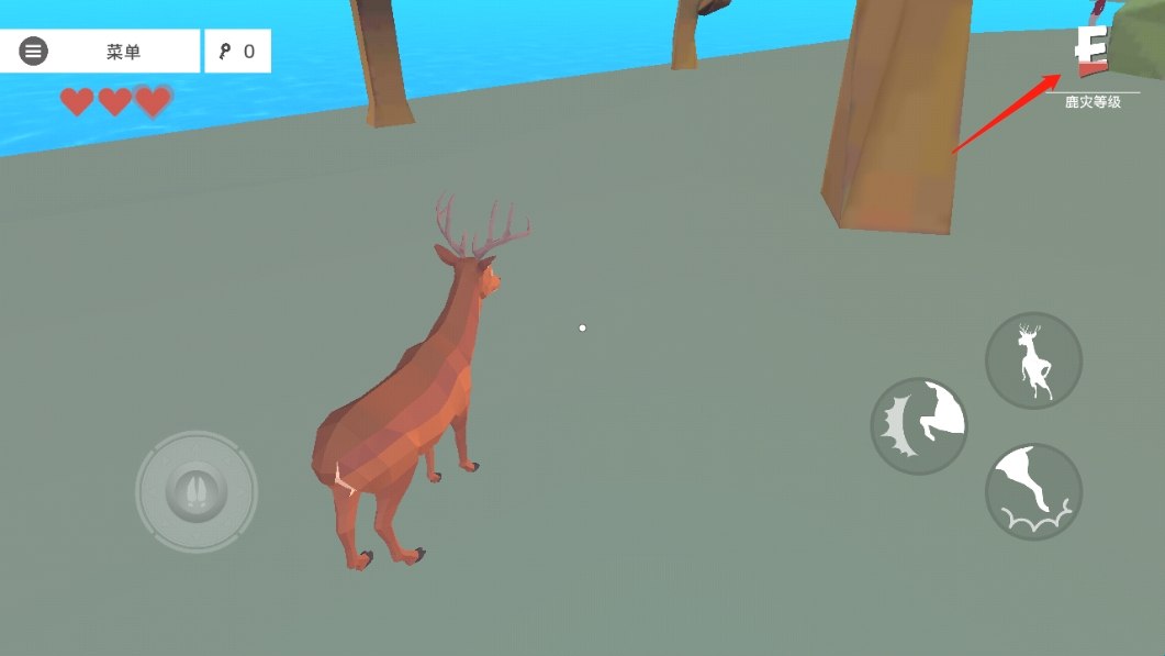 4、进入游戏后,左方控制鹿的移动,右边是鹿的一些技能;