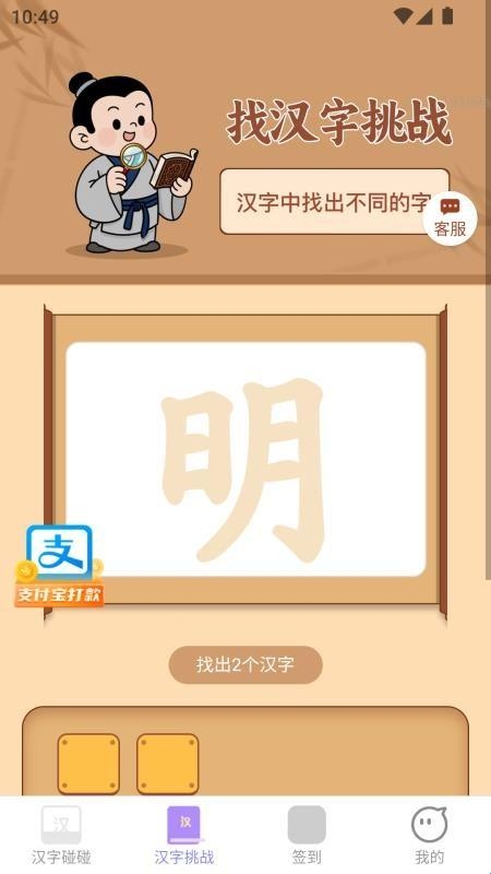 提供了一个寻找汉字的挑战游戏,让你搜索不同的汉字,更好地挑战你的视力。
