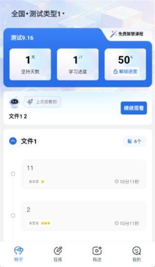 1、打开软件进入首页,可以观看各类不同的文件,而且了解具体的学习情况。