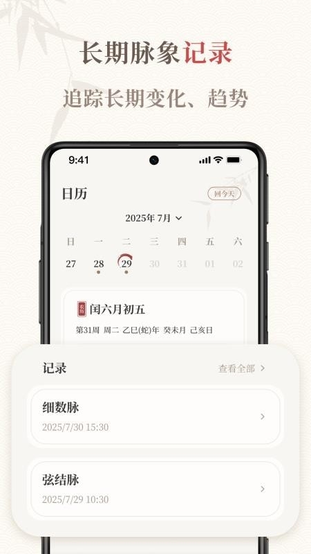 用户也可以对自己的每一次测量脉象详细记录下来,从而可以追踪长期变化,查看脉象趋势。