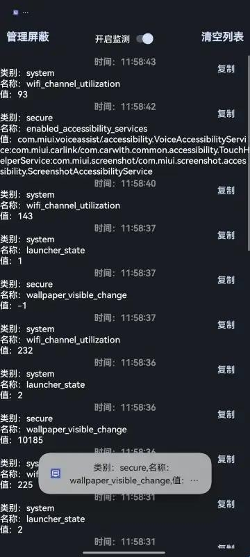 设置项监视器是一款专为开发者和编译人员打造的软件。用户可以通过这款软件实时监视手机中各个模块的运行情况和状态,帮助开发者快速的定位问题原因,针对性的进行改进。软件占用内存小,无需付费,非常适合新手小白练手!感兴趣的小伙伴快来下载设置项监视器体验一下吧!