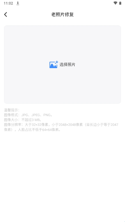 2、进入老照片修图页面,我们能自由选择需要修复的照片。