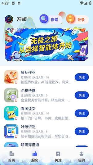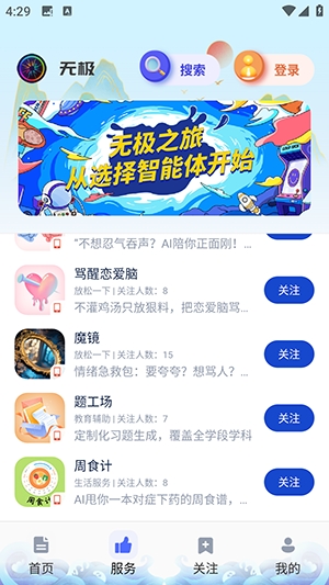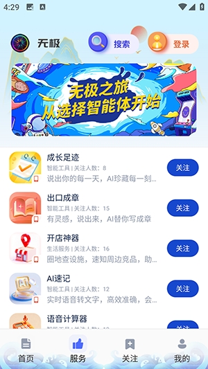 可以将你感兴趣的各种AI智能体添加关注,可方便用户随时查找自己关注的AI智能体使用。
