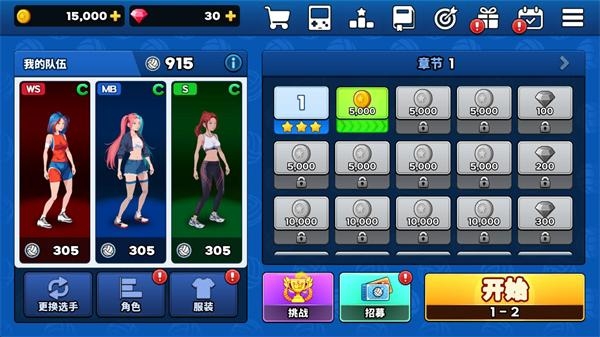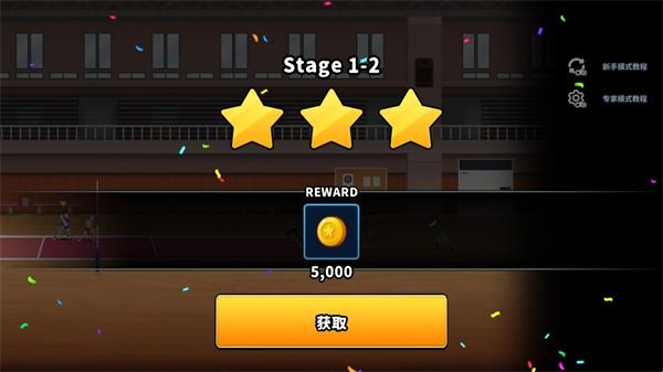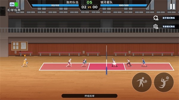 3、进入关卡后角色会自动接球,玩家之需要控制角色扣球和发球就可以。