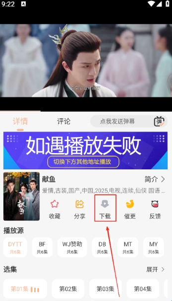 找到想看的影视后,点击进入详情页面,选择集数即可开始播放。若播放不流畅,可尝试切换下方的播放线路。