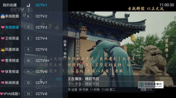 接着任意点击播放界面,我们可以看到左边侧边栏有丰富的频道选择。