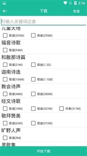3、里面有众多的诗经以及诗歌,选择需要下载的诗歌,选择好后点击开始下载即可