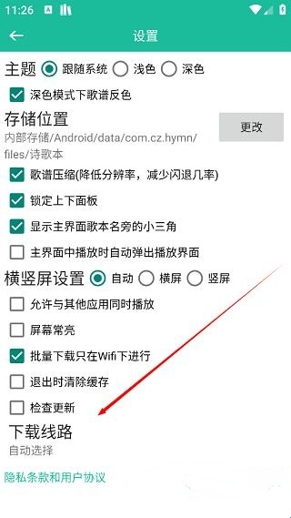 3、进入“设置”界面后,点击下方列表中的“下载线路”选项。