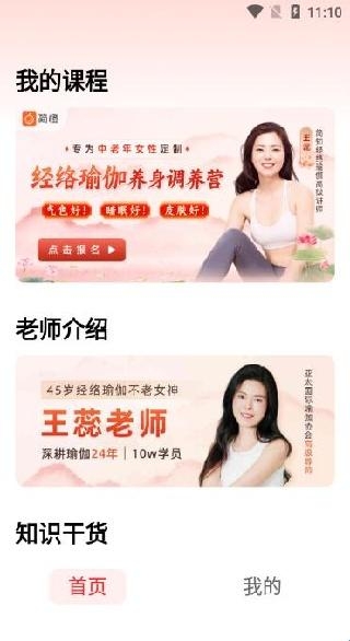 养生经络瑜伽app是一款非常好用的瑜伽健身养生类软件,这款软件为用户准备了丰富的瑜伽教学课程资源,用户可以在这里轻松学习瑜伽。软件还会根据用户的身体情况为用户制定个性化的健身方案,提醒用户及时进行锻炼,帮助用户养成良好的运动习惯,享受健康舒适的生活,感兴趣的朋友们快来下载体验吧。