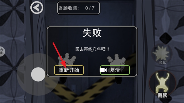 4、失败后点击【重新开始】按钮,重新挑战关卡,继续以小老鼠身份收集香肠、解谜逃脱。