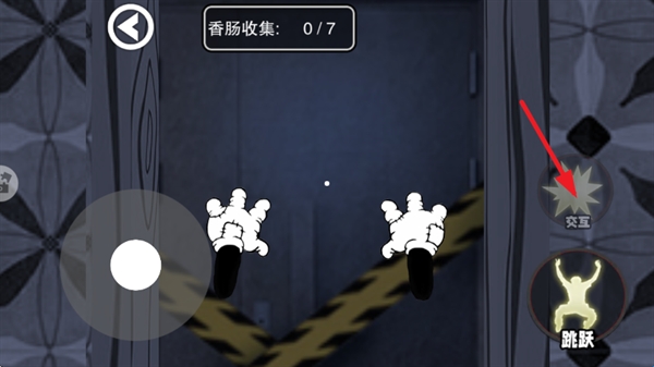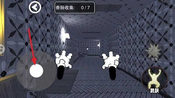 2、操控左侧【移动】摇杆,控制小老鼠在走廊移动,探索场景并收集【香肠】,目标收集7根。