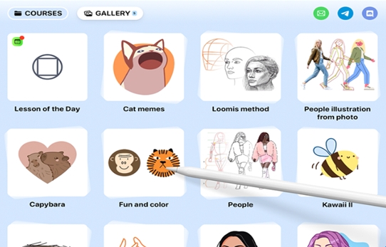 丰富课程体系:拥有超过500节涵盖涂鸦、素描、绘画、油画和书法等多种艺术形式的课程。课程内容从基础的线条练习、形状认知,到复杂的人体解剖、光影塑造等,适合从零基础初学者到专业艺术家等各类人群。例如,初学者可以通过简单物体的素描课程,掌握构图和线条运用;有一定基础的用户能通过人体结构课程,提升对人物绘画的理解。