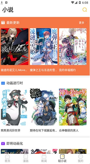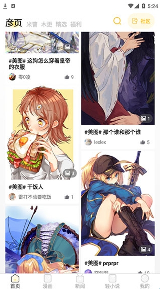 下载安装动漫之家社区,点击进入软件首页,在这里可以看到“首页”、“漫画”、“新闻”、“轻小说”、“我的”这五个模块